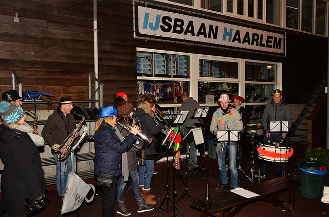 Er werd niet alleen super-serieus geschaatst, ook werd het een feestelijke en oergezellige avond. Al meteen bij binnenkomst werd je verwelkomd door het dweilorkest dat samengesteld was uit leden van Crescendo Assendelft, maar ook STG lid en trombonist Chris Moerland speelde met veel plezier mee. Zo kwam de stemming er meteen al in.