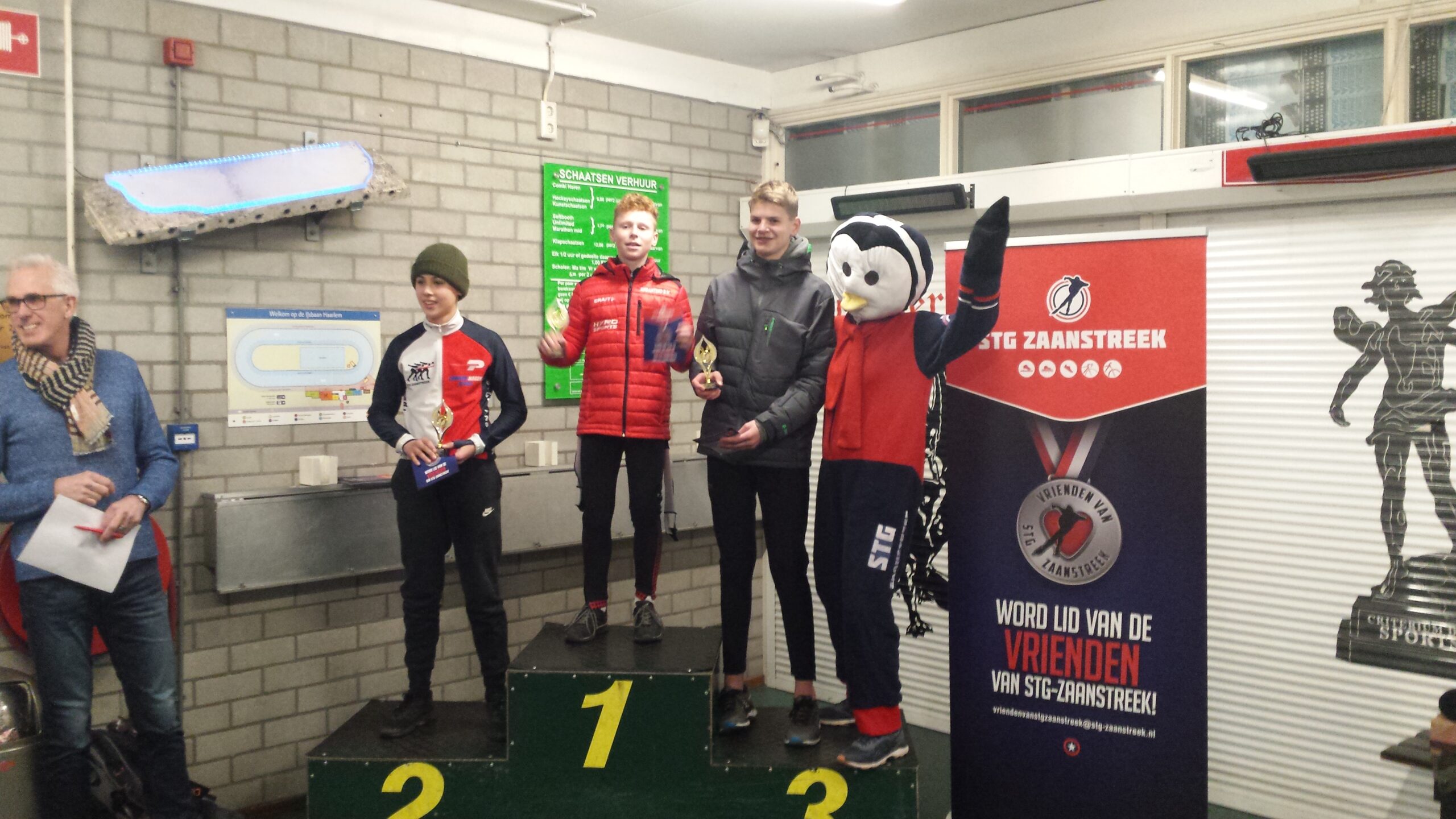 Aan het eind van de avond konden er vele glimmende prijzen mee naar huis en stond het podium telkens weer vol met nieuwe snelheidsduivels. Sven-Yvo Stoop en Miranda Dekker kunnen zich wederom een jaar sprintkampioen en -kampioene van de Zaanstreek kronen, en ook de pinguïn mascotte heeft zich wederom kostelijk vermaakt.