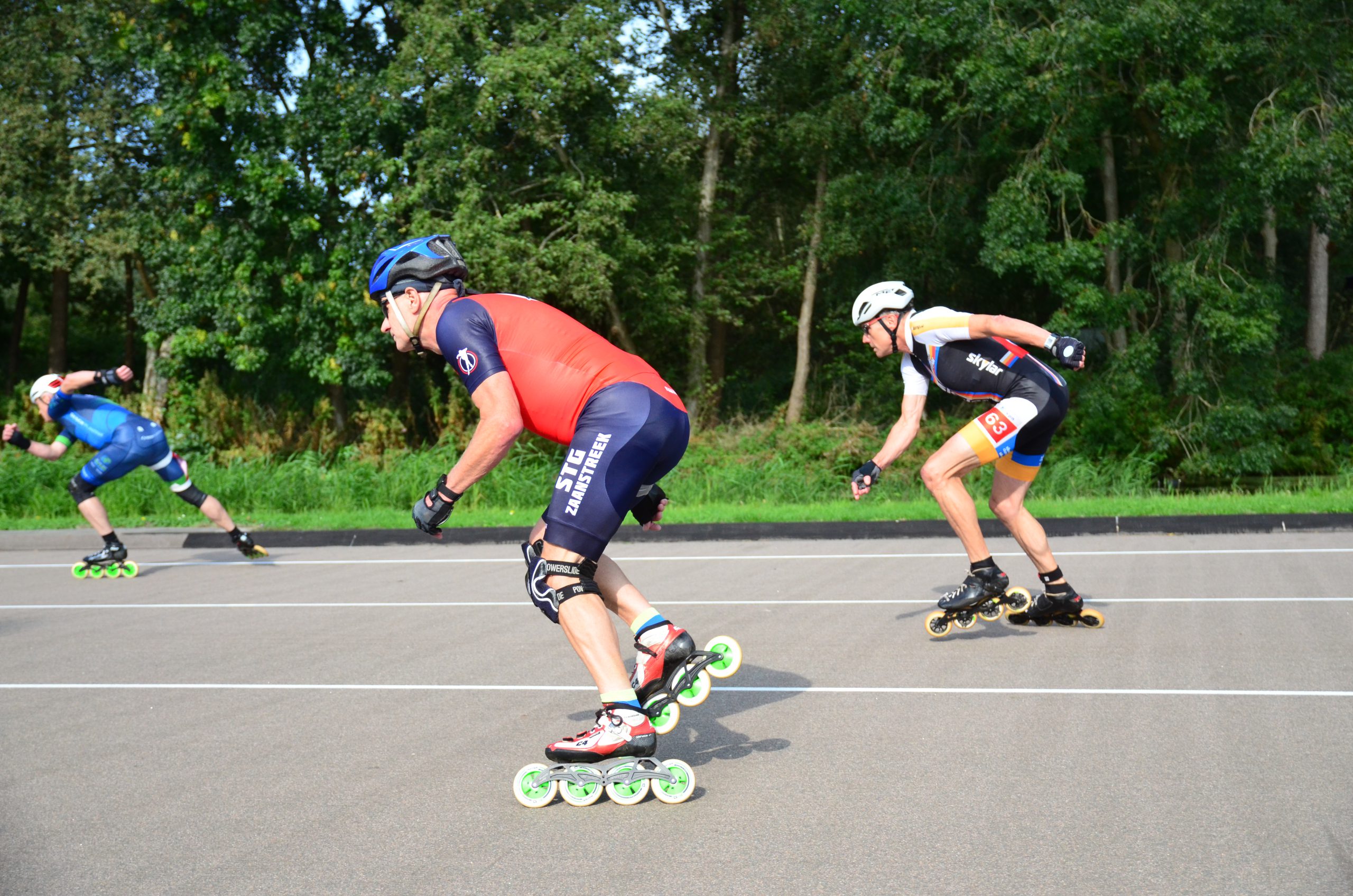De junioren en senioren moesten per categorie voor de 1000 meter (5 ronden!) de skates onderbinden en zorgen dat ze in de laatste meter de concurrentie met tenminste één skate voorbij steken. Dat resulteerde in de winst voor weer Lionel, weer Kees en Sanne van Veen. Aparte vermelding was er voor Kees, die na 4 ronden vond dat het wel genoeg was. De attente speaker, Chris Schuurman, redde Kees nog door hem als Hilbert van der Duim aan te spreken met de legendarische woorden van Leen Pfrommer: “Jongen, je moet nog een rondje! Hilbert, doorrije”. In tegenstelling tot Hilbert, sloot Kees deze race wel winnend af.