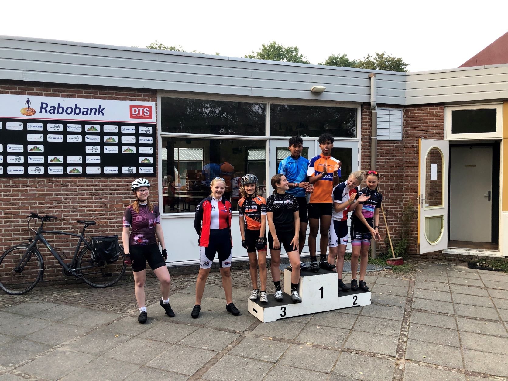 14 rijders van de jeugd stonden, onder luide aanmoedigingen van het aanwezige publiek, klaar om een mooie tijd neer te zetten. Voor 13 rijders was het zaak om te proberen een PR neer te zetten en voor één rijder, Sam Olie, was het een eerste kennismaking met de tijdrit en dus best wel een beetje spannend. Desondanks reed hij als jongste deelnemer een prima tijd. De jeugd reed een individuele tijdrit over 1 ronde met vliegende start en 2 ronden met staande start. Als afsluiting werd nog een koppeltijdrit over 1 ronde gereden. De jeugd was ingedeeld in 2 groepen. Een groep die getraind wordt door Sven-Yvo Stoop en een groep getraind door Leo van Klink.
