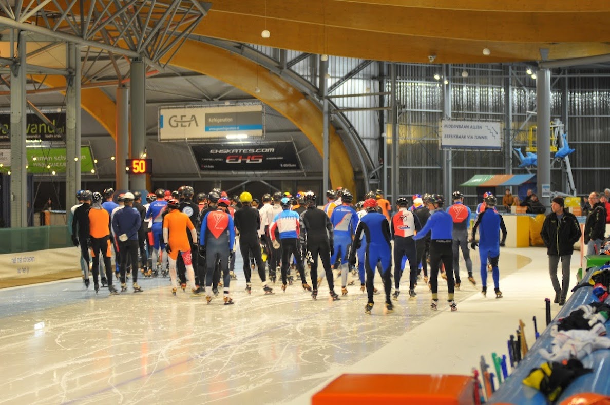 Daniel mocht als eerste starten voor Jongens pup B over 8 ronden. Met 7 man in de groep en vooraf samen de strategie bepaald ging Daniel van start; heel slim rijden en blijven zitten op de 3e plek. Daniel kwam met nog 500m te gaan bij uitkomst van de bocht zomaar aan kop. Ik zag hem vertwijfeld naar de kant kijken; wat gebeurt mij nou en wat moet ik doen? Er was maar één keuze, dat was volle bak door! Deze actie zorgde ervoor dat Daniel tot 75 m voor de finish nog op kop lag, maar door een misslag op het laatst, kwam hij als derde over de streep voor het kampioenschap van Haarlem. Daniel fantastisch gereden, mooie afsluiting van het seizoen en zoals iedereen op de ijsbaan zei: je doet niet meer onder voor de andere rijders en hoort gewoon bij de kopgroep en de kanshebbers in de marathon!