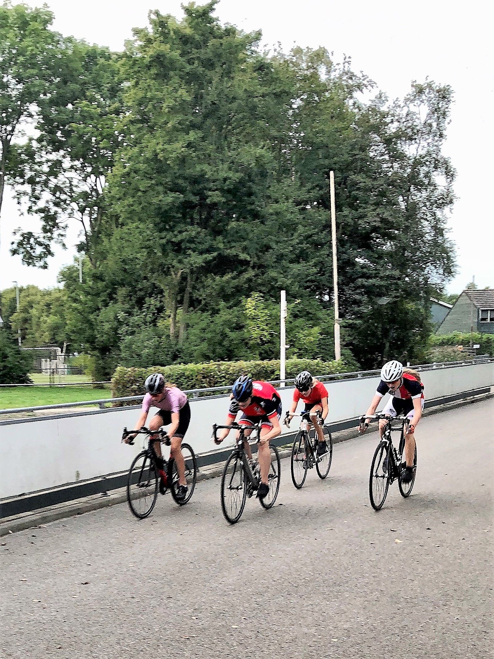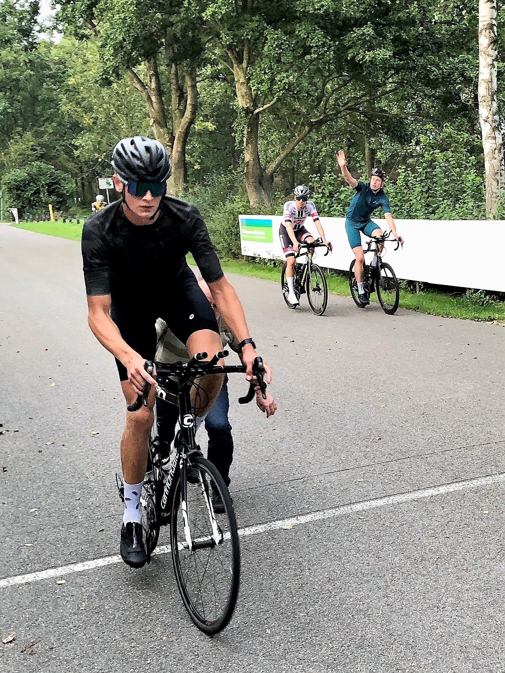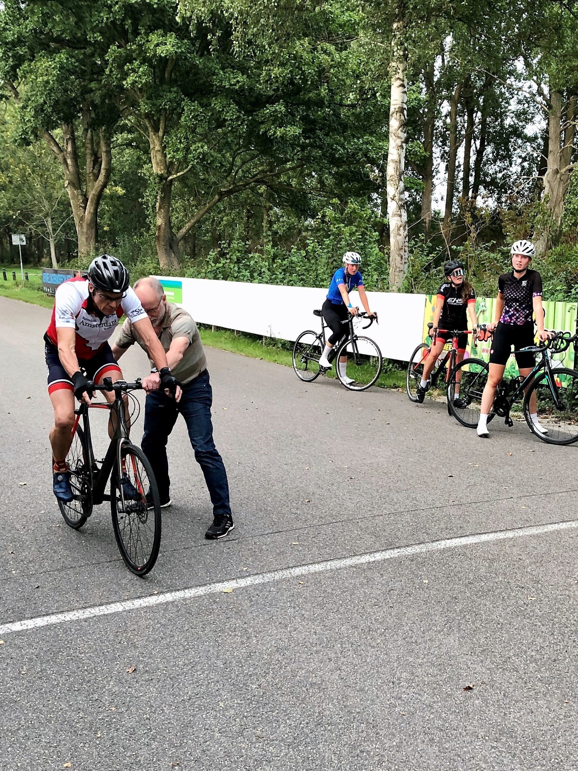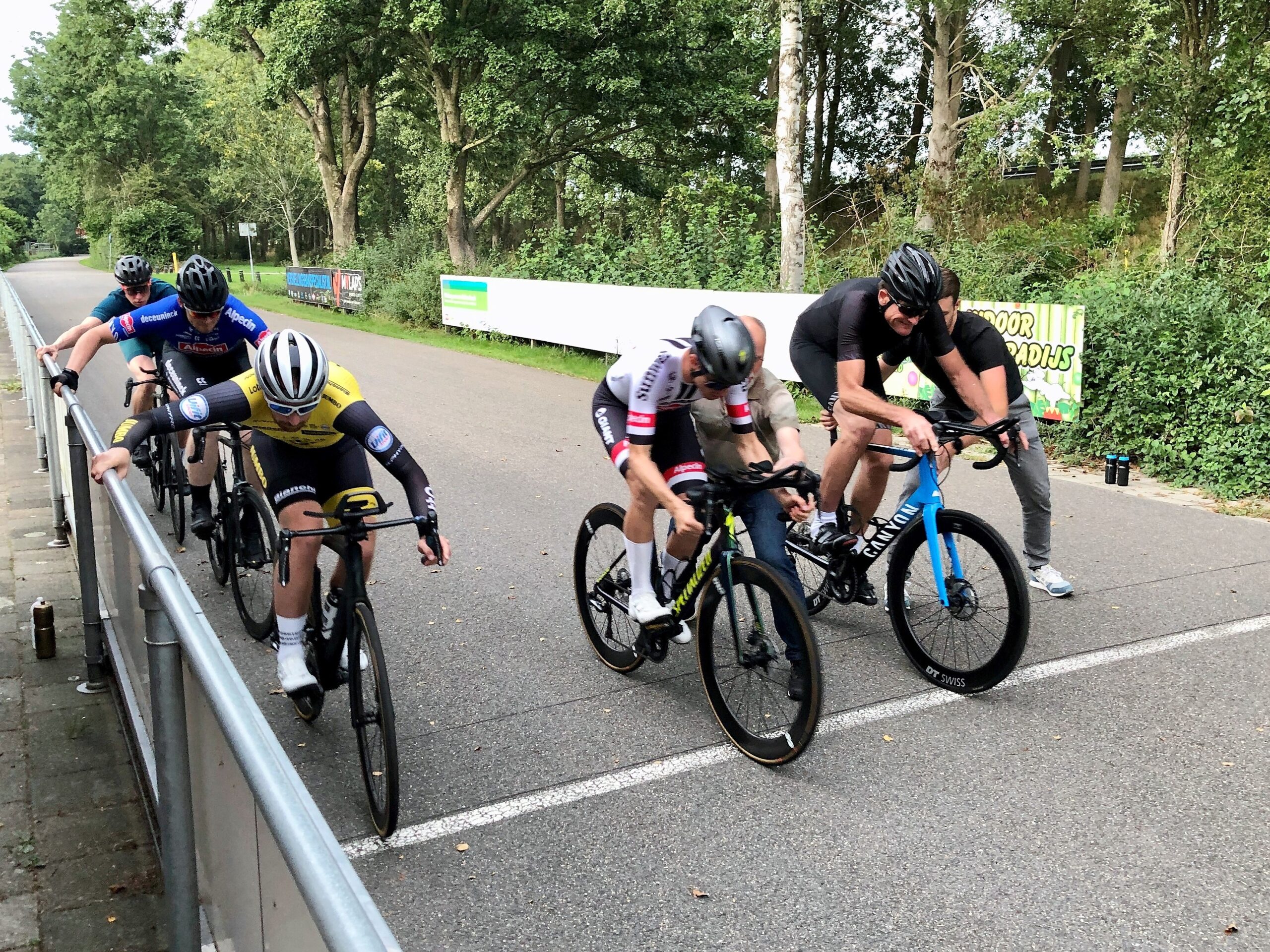 Het fietsseizoen loopt weer op het einde en net als vorig seizoen stonden er weer (ploegen)tijdritten op het programma. Eerst mocht de groep van Leo van Klink en Chris Schuurman starten. Djevi en Ties Watkins reden beide een tijdrit van 2 ronden, Sam Olie een tijdrit van 3 ronden en Lennart van ’t Veer, Liefe Smit, Jens van den Kommer en Stefan Boef reden een ploegentijdrit van 4 ronden (= 5 km). Onder prima omstandigheden, 18 graden en weinig wind, werden er mooie tijden gereden. Top gedaan allemaal.
