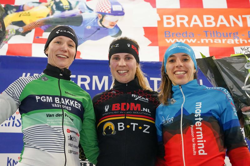 Het podium bij de vrouwen in Tilburg v.l.n.r.: Roza Blokker, Ineke Dedden en Emma Engbers. | Foto : Neeke Smit