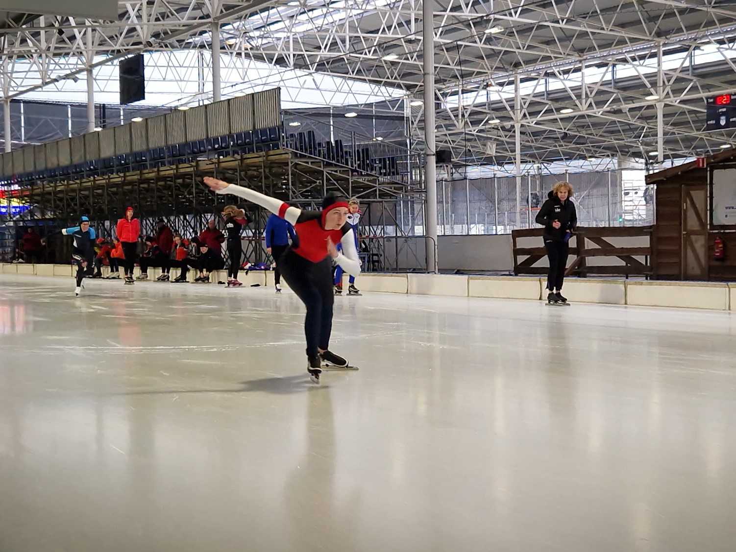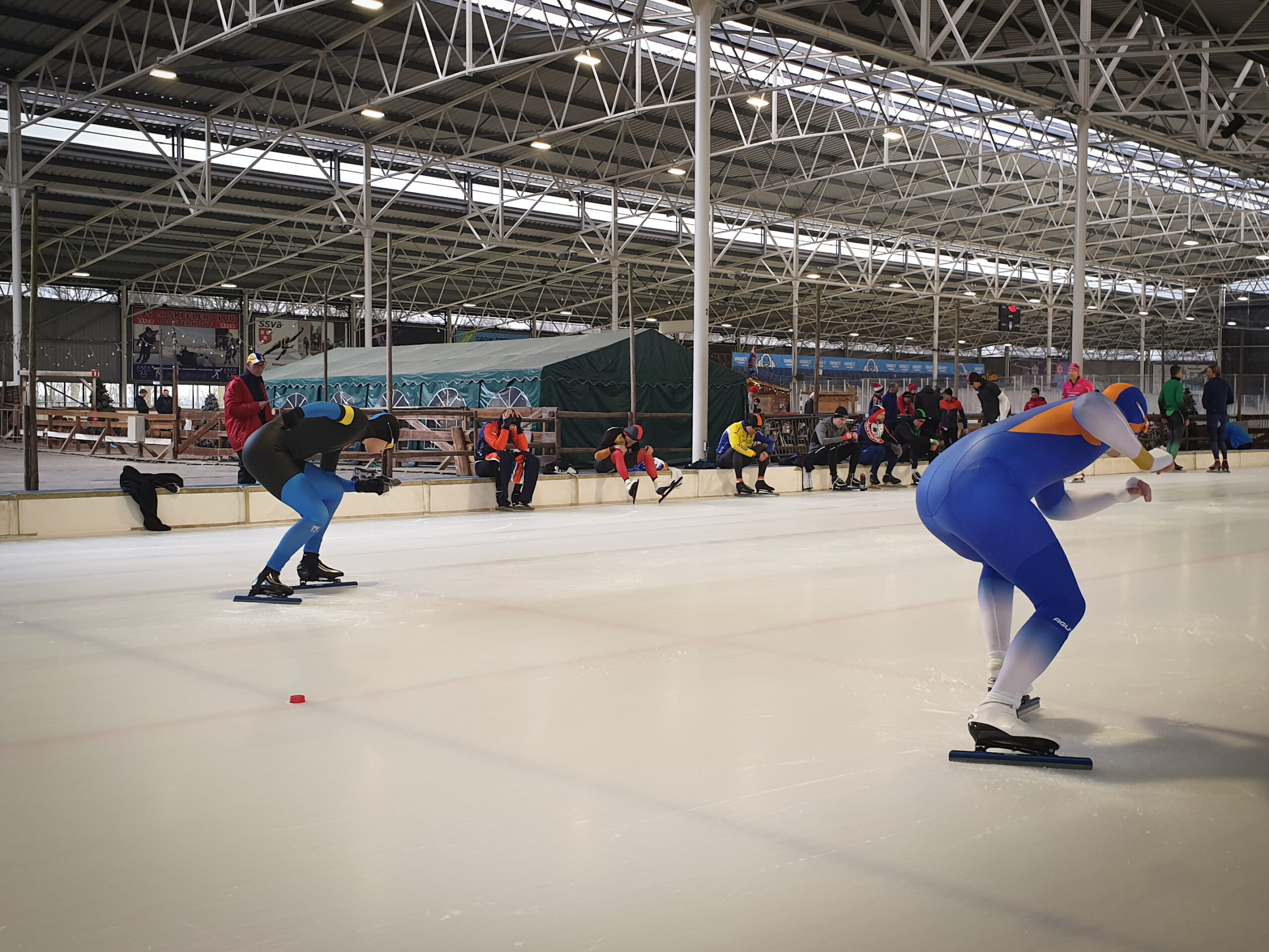Vanaf 16 uur mocht Bob aan de bak, voor een 500 en een 3000 meter. Na een valse start, letterlijk en figuurlijk want hij ging behoorlijk over de punten. Stond er een 42er op het bord. Dat had zeker beter gekund, dan maar alles op de 3km. En zo ging hij ook van start! Achteraf iets te enthousiast want de rondetijden liepen wel erg veel op. Naar eigen zeggen “de dood of de gladiolen”, nou die bloemen heeft hij niet gezien. Lastig inschatten wat kan op een baan waar je nog niet eerder gereden hebt.