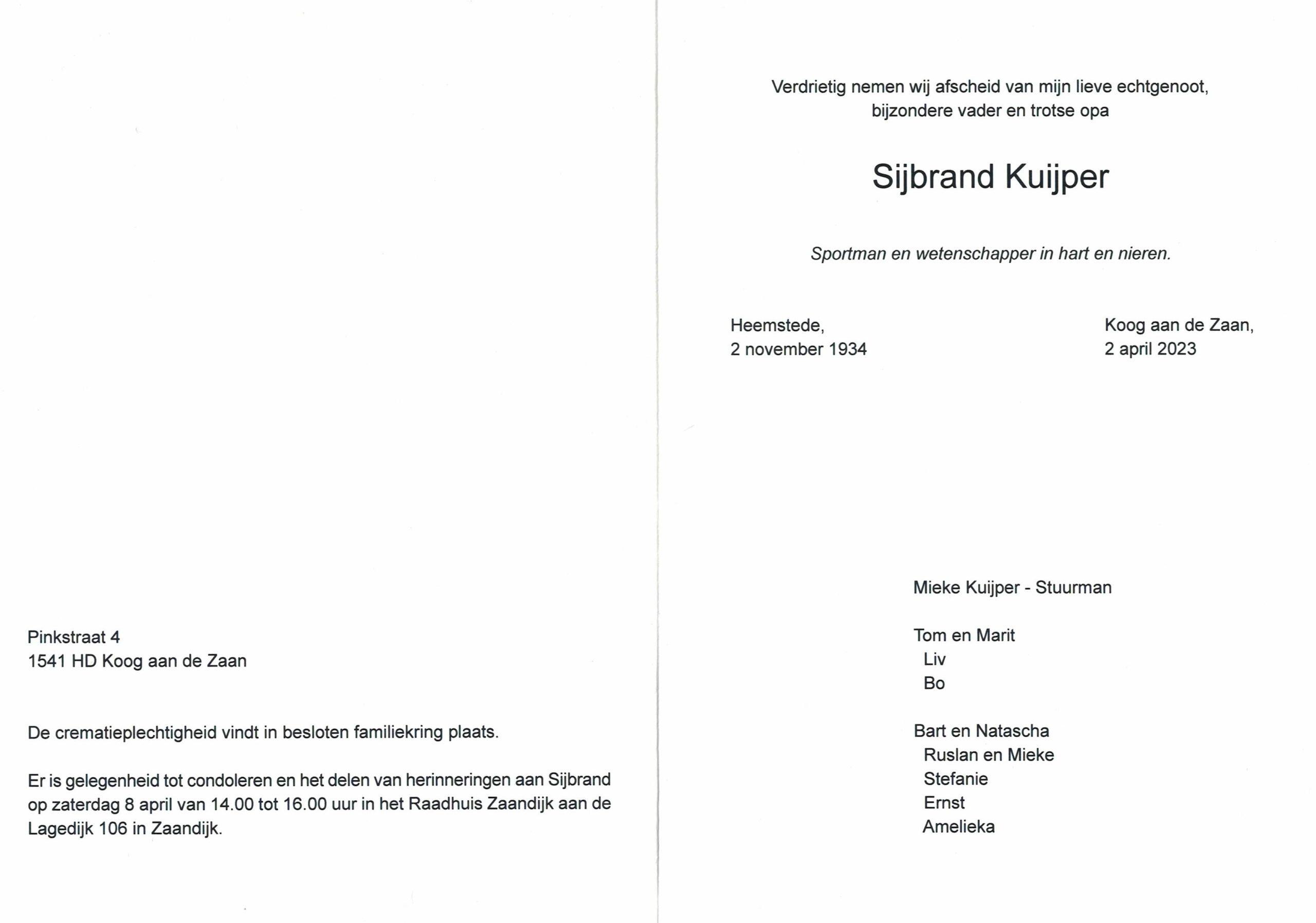 Lid van Verdienste Sijbrand Kuijper overleden.