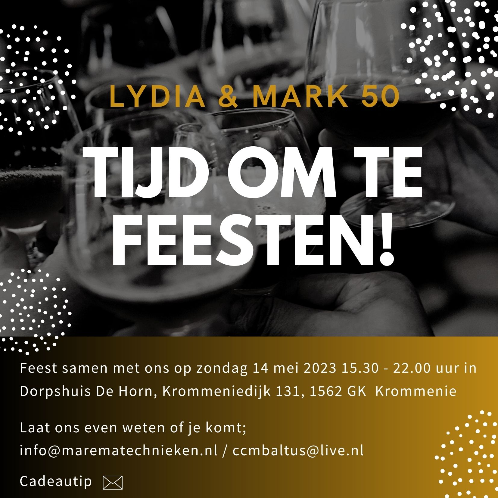 Dat er ook leuke gebeurtenissen zijn, hoorden we van Mark Kuijzer. Naast trainen in de duinen schaatst hij met de woensdaggroep in Amsterdam op de Jaap Edenbaan. Mark en zijn vriendin Lydia vinden het een feestje waard omdat ze op zondag 14 mei inmiddels allebei 50 jaar zijn. Zij nodigen alle leden van STG Zaanstreek uit in Dorpshuis De Horn in Krommeniedijk. Jullie zijn van harte welkom, maar laat even weten als je komt via info@marematechnieken.nl of ccmbaltus@live.nl