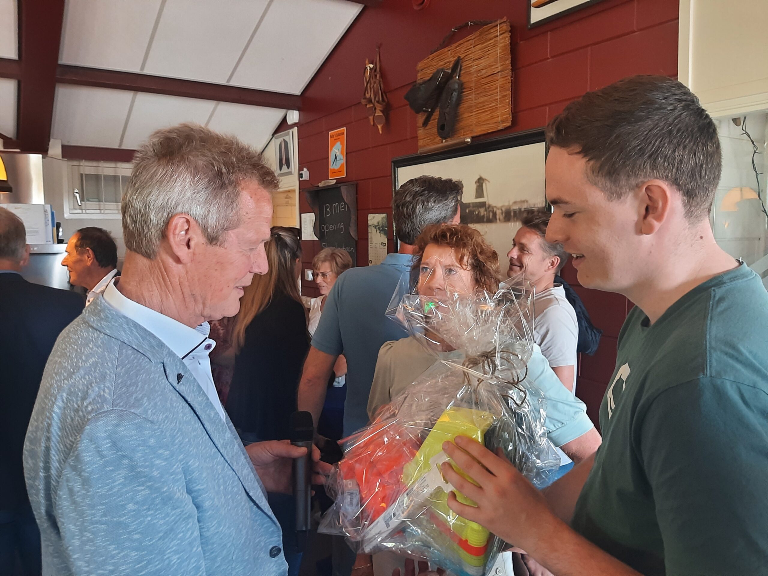 Dat was dan ook reden voor het bestuur van STG Zaanstreek om bij de opening te zijn en de club te feliciteren met dit heugelijke feit. Thijs van Tol, Aaffiena Moerland en Mark Peters waren aanwezig om voorzitter Nico Pronk te feliciteren en een pakket trainingsartikelen aan te bieden.