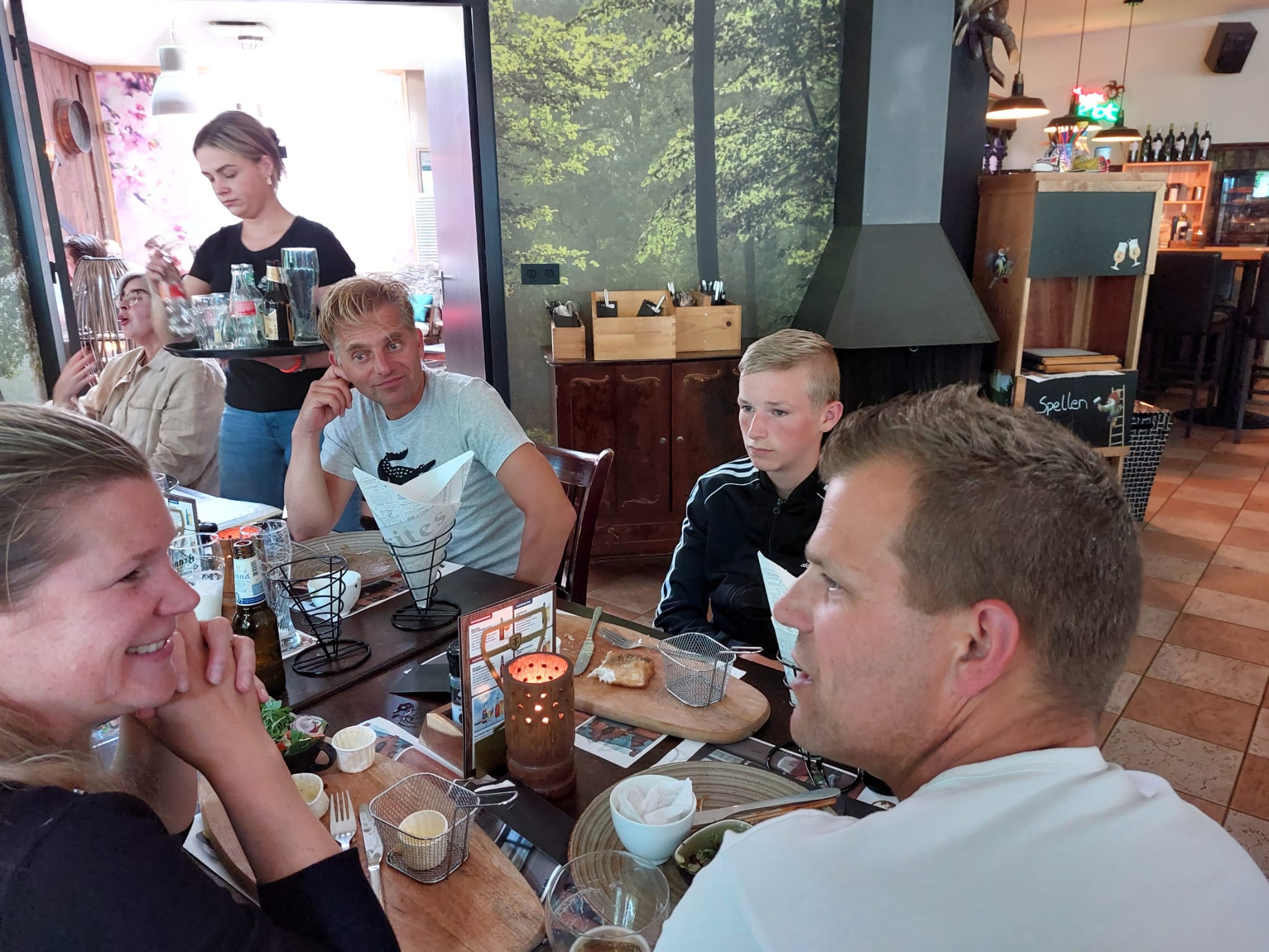 Respect voor de renners die toch de afstand hebben door gereden. Kanjers zijn jullie en ik ben enorm trots op jullie. Ik vertelde dat bij het avondeten in het eetcafé van Camping de Bosrand. Het gezamenlijk afsluiten met een diner is een mooi moment voor de binding in de club! Heerlijk samen eten, bijpraten met elkaar en horen waar ieder zoal mee bezig is in het dagelijks leven.